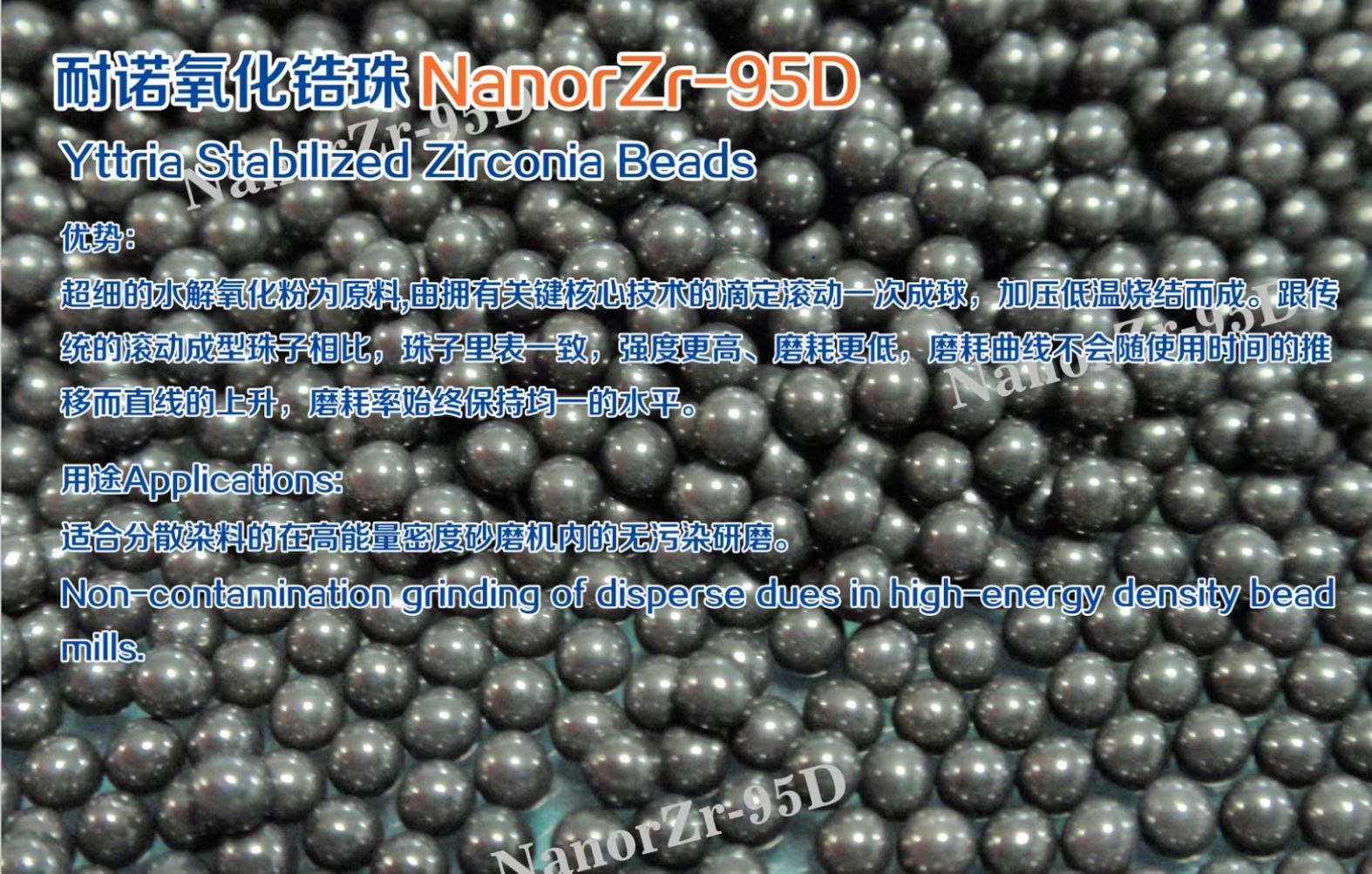 耐諾氧化鋯珠NanorZr-95D用超細的水解氧化粉為原料,研磨分散到納米級的漿料后由擁有關鍵核心技術的滴定滾動一次成球,加壓低溫燒結而成。跟傳統的滾動成型珠子相比,珠子里表一致,強度更高、磨耗更低、磨耗曲線不會隨使用時間的推移而直線的上升。適合對物料在高能量密度砂磨機內作純凈、高效的分散和研磨。