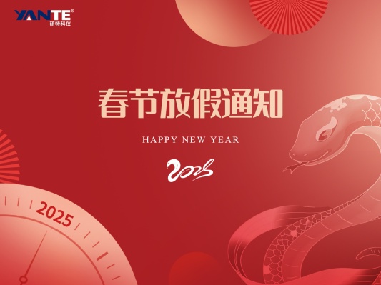 ?春節將至,研特科儀根據《關于修改〈全國年節及紀念日放假辦法〉的決定》精神,結合公司實際,現將“春節”放假的有關事宜通知如下。 1月25號(星期六)至2月6(星期五)放假公休,共13天。2月7日正常上班。 節前,各部門應做好防火、防盜等安全自查工作,消除安全隱患;祝愿各位同事過一個快樂的假期。值此靈蛇