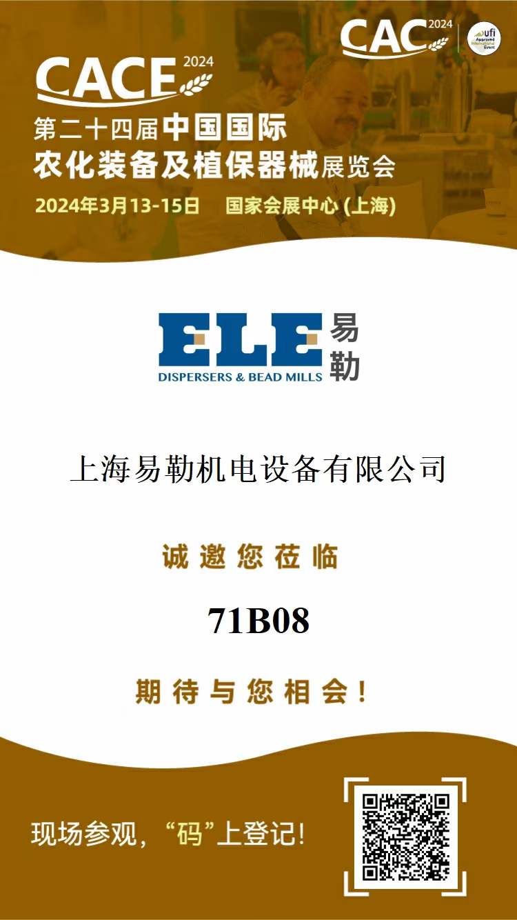 農化行業(yè)盛會,CAC2024第二十四屆中國國際農用化學品及植保展覽會于3月13-15號,在上海市國家會展中心舉辦,上海易勒機電展位位于7.1號館B08展臺,歡迎蒞臨!