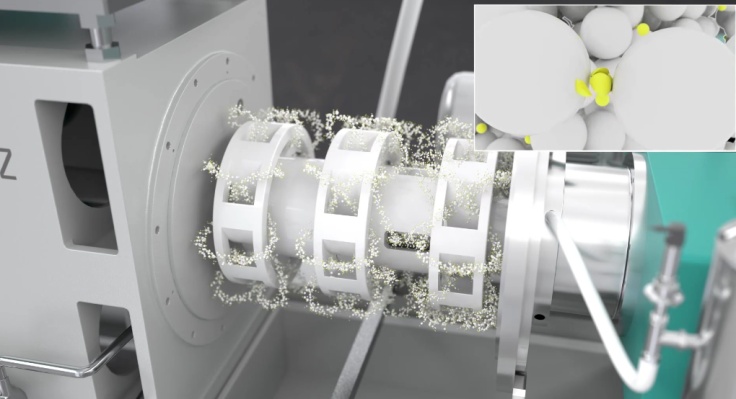 ?在現代工業生產中,物料的研磨與分散是關鍵步驟,尤其在新能源電池材料、高性能涂料、油墨、醫藥制劑、半導體材料及化妝品制造等行業,對物料的粒徑和分布有著嚴格要求。傳統研磨技術雖然能夠實現物料的粉碎,但往往難以避免粒子結構的破壞,這一局限性在許多應用中是不可接受的。圖為:博億砂磨機研磨工作區域示意圖在此背