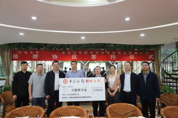 ?為支持中南大學教育事業的發展,幫助貧困學子圓夢大學,激勵學生勤奮學習、刻苦鉆研,10月15日,金環磁選獎學金捐贈儀式在中南大學隆重舉行。金環磁選總經理黃會春、副總經理任祥君作為捐贈單位代表出席此次活動。儀式現場,中南大學資源加工與生物工程學院院長覃文慶介紹了獎學金設立情況及相關管理辦法,教育基金會秘