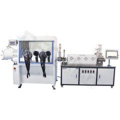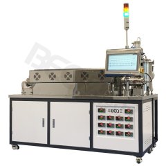 BOF-7-100是一款用于有機小分子升華提純的專用設備。電氣控制采用控溫儀表與觸屏組合操控,其控溫精確且操作直觀簡便。儀表及觸屏均采用國內**品牌,質量精確可靠。7段爐膛溫區長度100+250+100+150+150+100+100mm,爐膛間格擋厚度10mm,7段溫區14點控溫,可以電動開啟,并裝有散熱風扇,使降溫更快。配備100mm口徑爐管,裝載量更大。使用電阻絲加熱,具有獨特的抗氧化性。保溫材料采用真空吸附成型的氧化鋁纖維無機材料,環保節能。左端法蘭采用可滑動結構,使爐管拆卸清洗簡單方便,爐管與法蘭之間采用聚四氟墊片填充縫隙,減少污染源,另配有觀察窗、進氣截止閥與預留KF16真空接口。右端法蘭采用簡化結構,爐管與法蘭之間采用聚四氟墊片填充縫隙,減少污染源,配有旁抽截止閥、細抽截止閥與真空計接口。右端法蘭的CF100接口連接氣動插板閥,插板閥后端裝有冷卻過濾井,配備德國萊寶磁懸浮分子泵與萊寶真空泵。在右端法蘭與插板閥件配備靜態過濾網。整個管路接口采用金屬密封+氟橡膠密封結構,提高真空性能。本設備按配備有一路質量流量計,選用七星D07-26C系列,氮氣標定。量程5slm,采用國內**品牌,質量精確可靠。氣體經流量計后從爐管的左右端分別進入,氣流相對平穩,使對升華材料的影響降到*低。本設備結構采用金屬殼體承重,顏色采用定制橘紋白,設備外觀簡潔明快,更具備操作直觀方便、控溫精確、真空優良等性能。