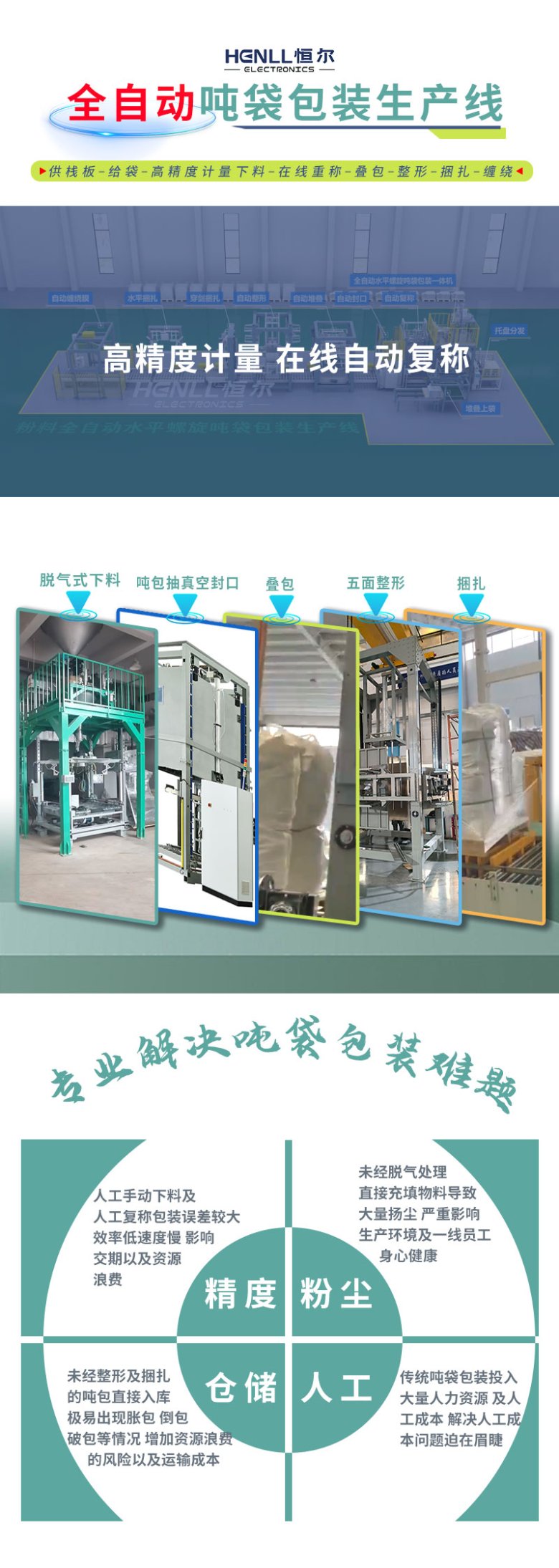 ?廣州恒爾全自動噸袋包裝機:以科技賦能粉體包裝,開啟智能生產新紀元在新能源、化工、醫藥等領域,粉體物料的高效、安全包裝一直是制約產業升級的關鍵環節。作為國內粉體包裝設備領域的領軍企業,廣州恒爾電子設備有限公司憑借近十五年的技術沉淀,推出新一代全自動噸袋包裝機生產線,以突破性創新解決傳統包裝痛點,助力企