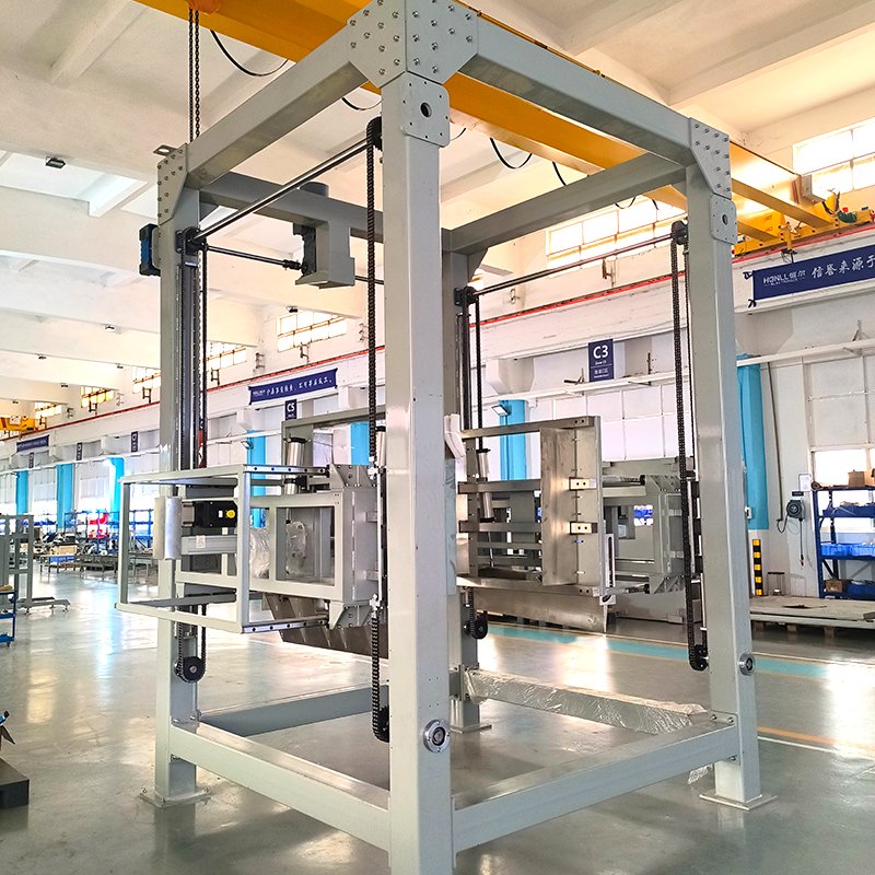 自動掛袋:設(shè)有自動掛袋裝置,能夠自動抓取噸袋并將其準(zhǔn)確地掛在包裝機(jī)的出料口掛鉤上,無需人工手動掛袋,提高了包裝的自動化程度和工作效率,減少了人工操作的勞動強(qiáng)度。