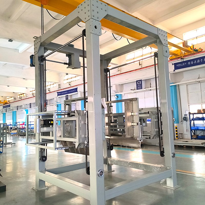 引領先鋒,自動化新時代 HFDZ-1000全自動噸包疊包機,如同一位技藝精湛的舞者,以其優雅的動作,精準地完成每一次噸袋的疊包作業。它的自動化程度之高,不僅提升了生產效率,更為操作人員減輕了勞動強度,讓生產線上的每一分鐘都充滿了智慧的光芒。 多面手藝,適應廣泛 無論是礦產的堅硬,還是新能源材料的細膩,亦或是糧食的飽滿,HFDZ-1000都能輕松應對。它的應用范圍廣泛,從礦產到新能源材料,從工建材到糧食飼料,無一不展現出它強大的適應能力和卓越的工作性能。