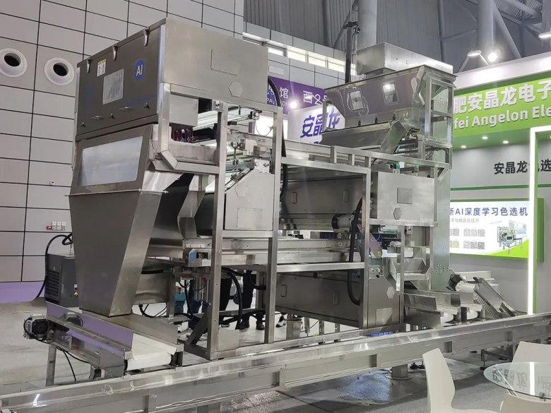 ?4月18日第十七屆中國堅(jiān)果炒貨食品展在合肥濱湖國際會展中心盛大開幕。本次展會是國內(nèi)規(guī)模最大、最具影響力的堅(jiān)果炒貨與干果果干行業(yè)盛會之一,匯聚了國內(nèi)外眾多知名企業(yè)和品牌,展示最新的產(chǎn)品和技術(shù),探討行業(yè)發(fā)展趨勢,促進(jìn)合作與交流。01 產(chǎn)品展示,全新升級展會現(xiàn)場,公司攜帶自主研發(fā)生產(chǎn)的AI深度學(xué)習(xí)色選機(jī)亮