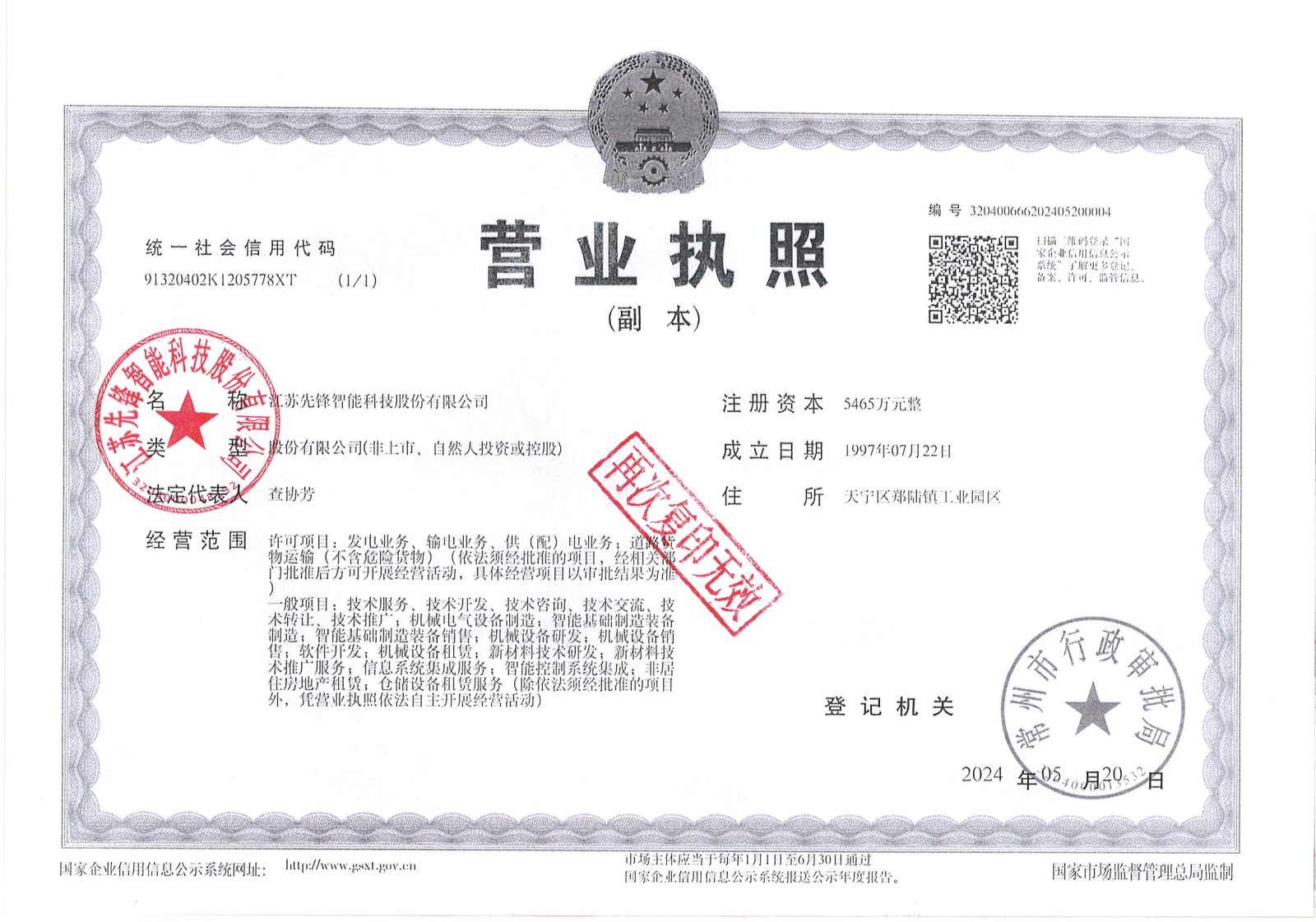 江蘇先鋒智能科技股份有限公司企業(yè)類型