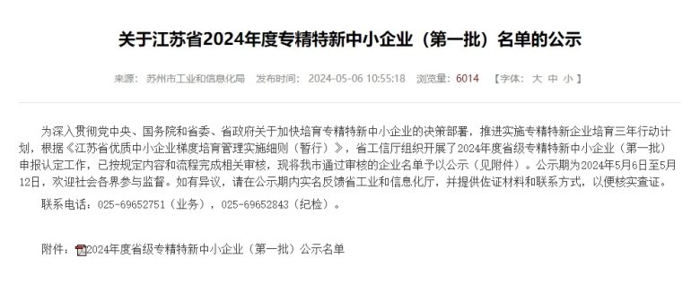 ?2024年5月6日,蘇州市工業和信息化局發布《關于江蘇省2024年度專精特新中小企業(第一批)名單的公示》文件,北京中科科儀股份有限公司控股企業蘇州中科科儀技術發展有限公司成功入選。“專精特新”是國家為鼓勵中小企業實現專業化運營、精細化產出、特色化工藝和新穎化產品四項發展而專門設立的榮譽獎項,專精特