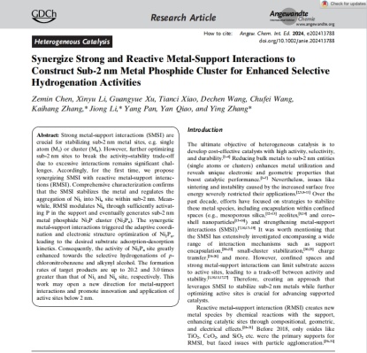 ?第一作者:陳澤民通訊作者:張穎文章名稱:《Synergize Strong and Reactive Metal-Support Interactions to Construct Sub-2?nm Metal Phosphide Cluster for Enhanced Selective Hyd
