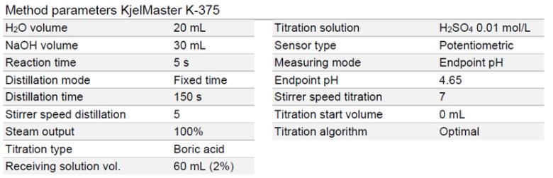 使用消解儀 K-449 和全自動凱氏定氮儀 K-375 / K-376 通過電位滴定法測定乳制品中的氮和蛋白質, 可獲得可靠且重現性好的結果,相對標準偏差低(RSD)。微量凱氏定氮法減少了消解過程中硫酸和催化劑的用量,也減少了蒸餾步驟中 NaOH 的用量。化學試劑用量的節省為經典凱氏定氮法帶來了經濟和生態方面的雙重優勢,同時又保持了其高精度和高準確度。