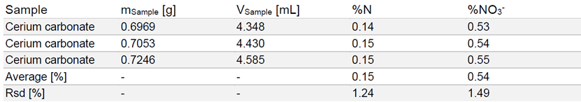 碳酸鈰樣品硝酸鹽含量為 0.54%(已扣除氨氮)