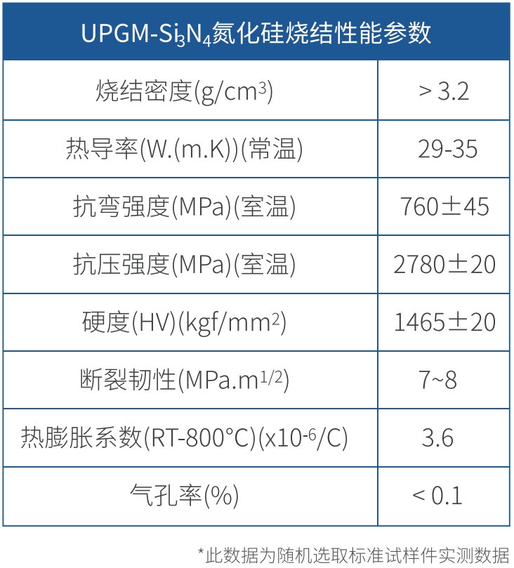 ▲PEP制備氮化硅、碳化硅等特種陶瓷的優勢 在打印材料方面,升華三維擁有自主研發的粘結劑體系,成功開發出適用于PEP技術的UPGM-Si3N4等材料。以UPGM-Si3N4材料為例,其具備良好的加工性能和出色的最終產品性能,為氮化硅陶瓷的3D打印提供了優質的材料保障。