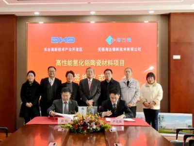高性能氮化鋁陶瓷材料項(xiàng)目源于清華大學(xué)國(guó)家863科技成果,建成后年產(chǎn)氮化鋁基板720萬(wàn)片,氮化硅基板300萬(wàn)片。