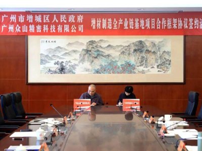 3月26日,增城區(qū)人民政府與廣州眾山精密科技有限公司簽署增材制造全產(chǎn)業(yè)鏈基地項目合作框架協(xié)議,雙方將共同建設(shè)增材制造全產(chǎn)業(yè)鏈基地。